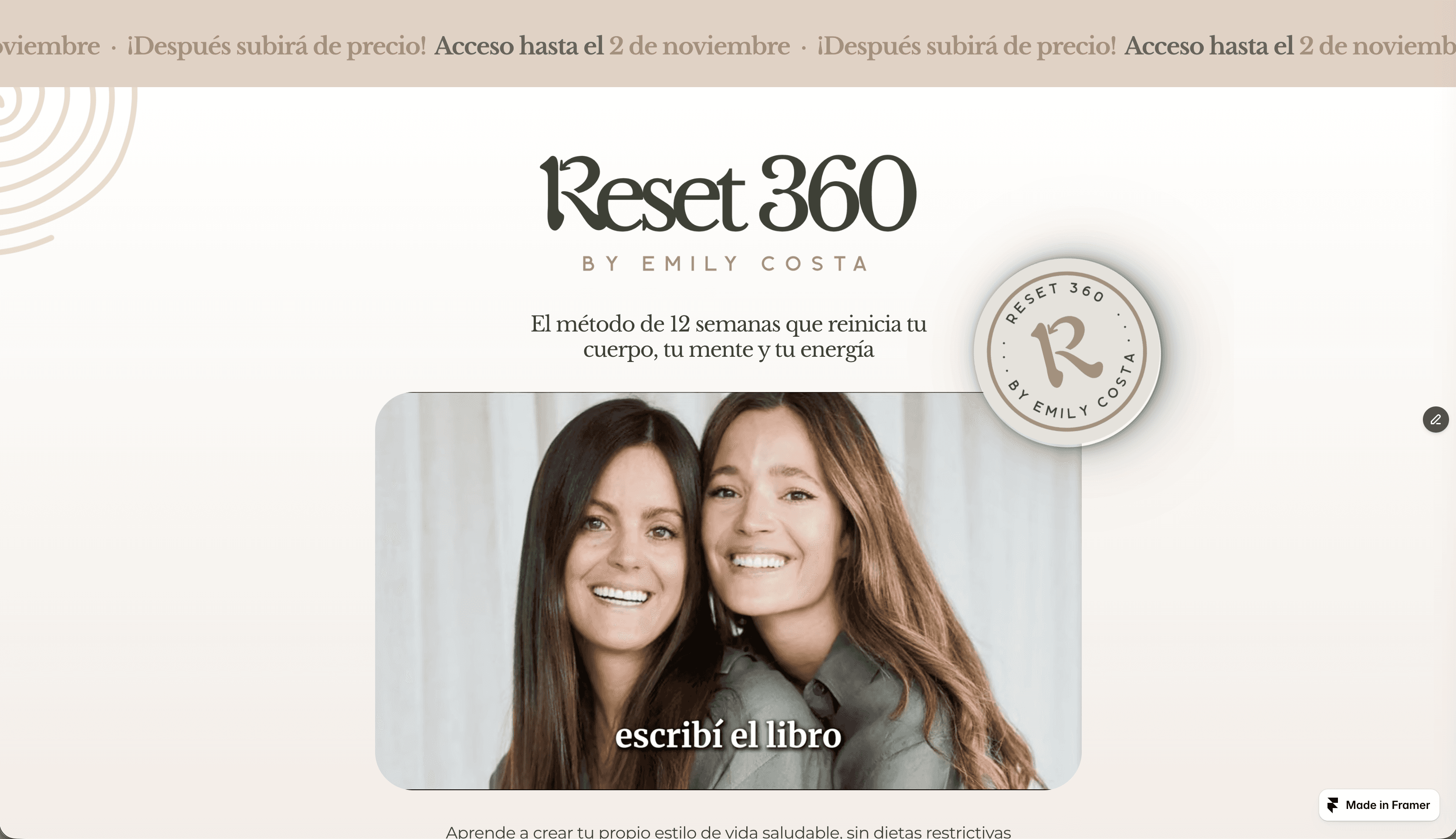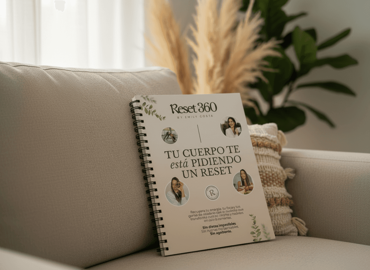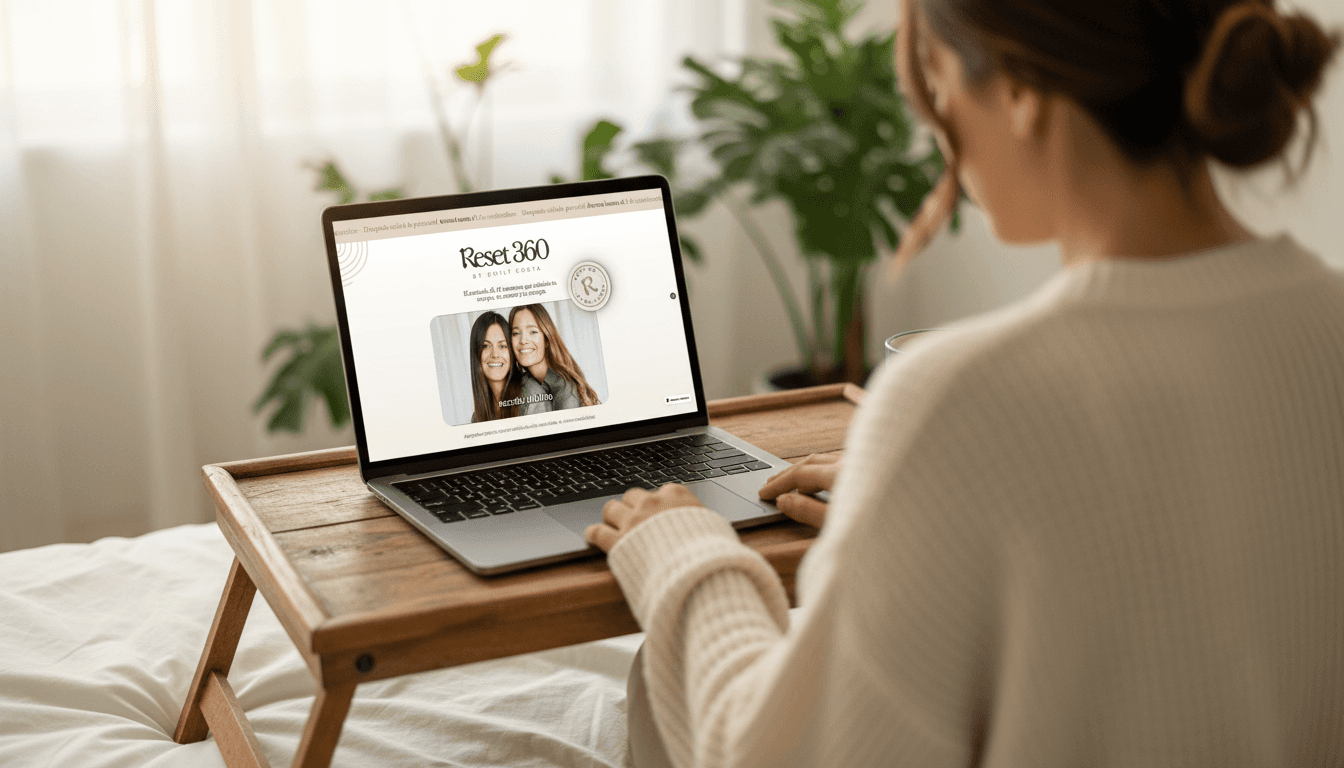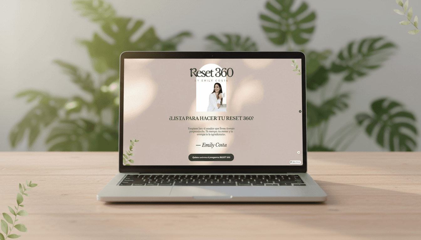 Design a cohesive brand, sales page, and supporting assets for RESET 360, a 12-week wellness program by Emily Costa. The goal was to create a clear and trustworthy identity that communicates a holistic approach to health, positioning the program as realistic, sustainable, and grounded in long-term transformation rather than quick fixes.